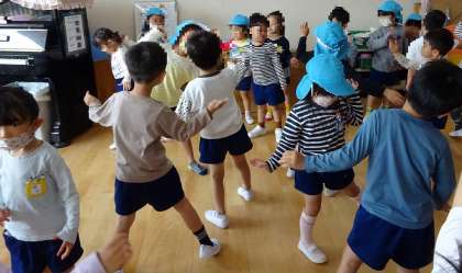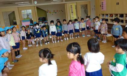そら組さんがお部屋に遊びに来てくれて、ご挨拶をしたり、歌を歌ったり、お部屋で仲良し遊びやダンスを踊りました♪