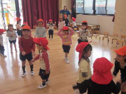 今日もいちご組、つき組で一緒に仲良し遊びや体操をしたりして遊びました。