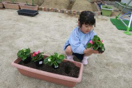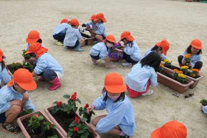 昨日は、年長児が花と野菜の苗の植え付けをしました。