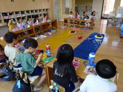 それぞれ、こいのぼりを作っていますが、年長はみんなでこいのぼりを作っていました。