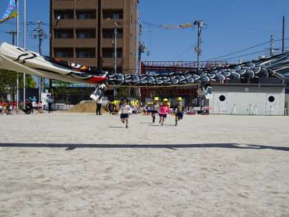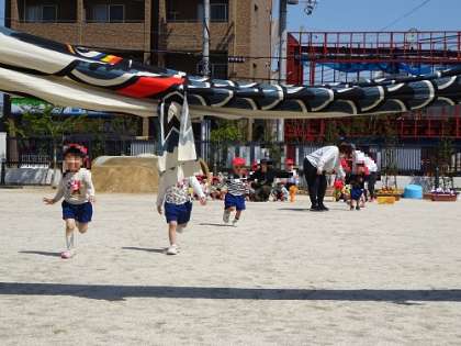 こいのぼりに向かって笑顔で走ってくる子どもたちってかわいいです!