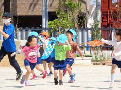 手作りのこいのぼりをもって、自由に走りました。 今日はこのこいのぼりを持って帰りました!