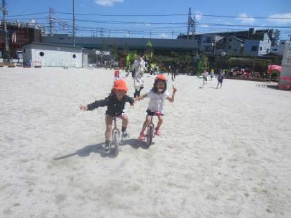一本歯下駄や一輪車、かけっこなどたくさん体を動かして遊んでいます。
