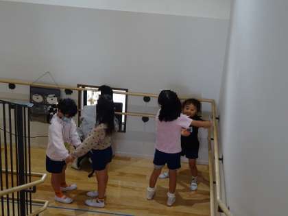 階段の踊り場 公開日 2023/05/08 更新日 2023/05/08 お知らせ 2階の階段の踊り場では、先生がCDデッキと好きにかけることができるCDを置いて環境を整えていました。 早速、5歳児が友達と踊っています。 また、保育室では、何やら作りながら相談中…。 この自由な時間と空間の確保こそが、子どもたちの主体性を育てます。 いいね(0)