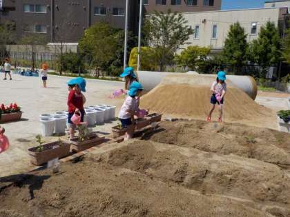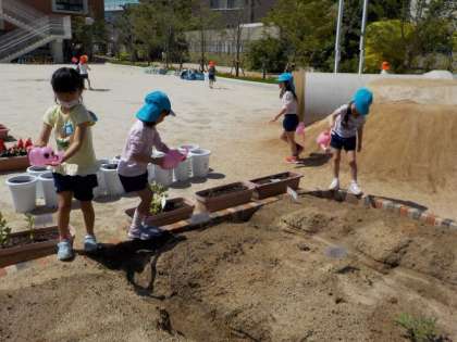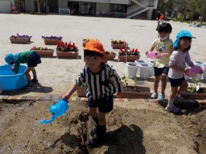 「大きくなってほしい」「花もさくかな」と、生長を楽しみにしながら水やりをしています。