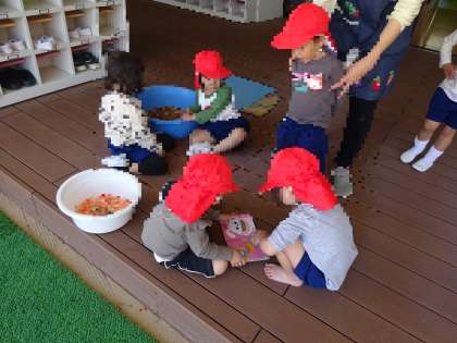 3歳児はご飯の後にお家でお昼寝をしていた子も多く、体力にも個人差があります。