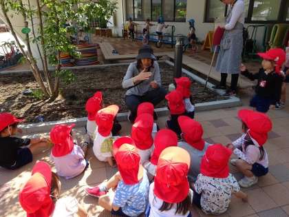 いちご組のおともだちと先生でひまわりの種を植えました。