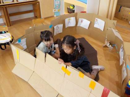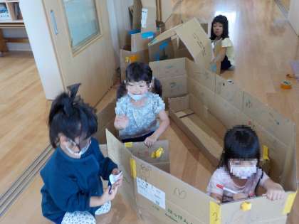 段ボール遊び(5歳児) 公開日 2023/05/17 更新日 2023/05/17 お知らせ 段ボールの遊びも少しずつ発展してきています。 「ぼくの電車」「ケータイつくった」と、個々に段ボールを切ってつくっていましたが、今週に入ってから、「つなげよう」「おうちにしよう」と、友達と一緒につくり始めています。 いいね(0)