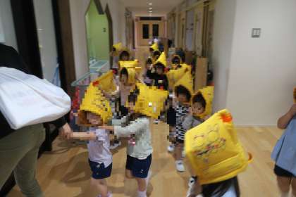 いちご組さんも泣くことなく、先生の後について上手に避難することができましたよ!