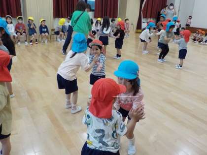 遊戯室で集会 公開日 2023/05/19 更新日 2023/05/19 お知らせ 一日雨だったので、今日は遊戯室で全園児が集まって集会をしました。 大好きな仲良し遊びの音楽が始まると、自然に笑顔になり、、異年齢で関わりあってダンスを楽しみました。 いいね(0)