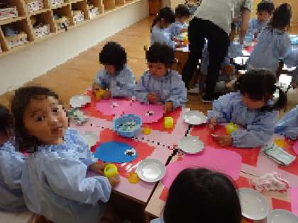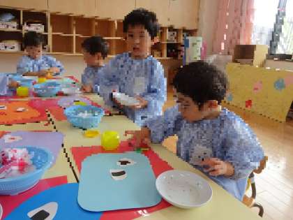 初めての糊の製作(3歳児)