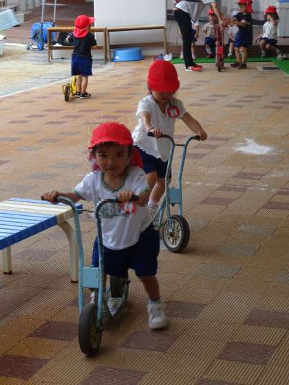 お外で遊びたいな 公開日 2023/05/29 更新日 2023/05/29 お知らせ いちご組が園庭に出ようとすると、雨が降ってきてしまい 「お外行きたかった!」 「雨やまないかな?」 とテラスで待ってみることに。待っているあいだに雨のかからないところでスクーターに乗りました。そうしていると雨が止んだので園庭で少しでしたが遊びました。 (写真3) 「電車にのってるねん」 とながい電車ができました。 いいね(0)