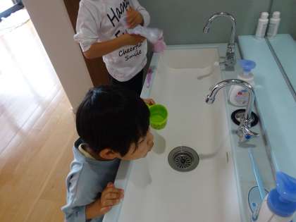 歯磨き指導 公開日 2023/05/29 更新日 2023/05/29 お知らせ 年長はお弁当の後に歯磨きを始めました。 先生と歯の磨き方の確認を一緒にします。 歯磨きのあとはうがいも。 水がとばないように低いところで水を吐き出します。 いいね(0)