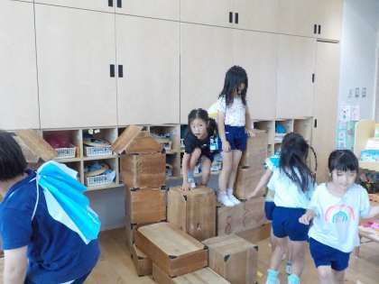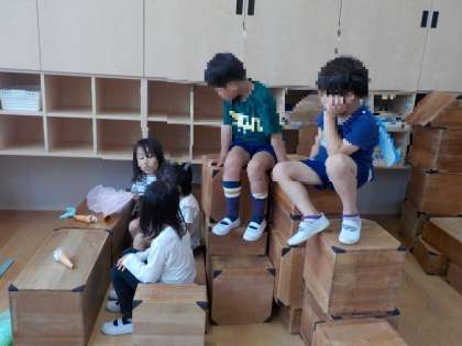 遊戯室においていた大型積み木を年長の部屋に持って上がりました。