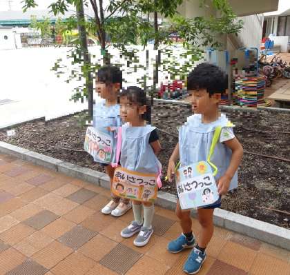 登園してくる子どもたちも、恥ずかしながらも挨拶したり、お家の方も促してくださりありがとうございました。