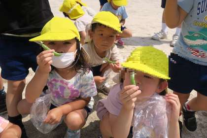園庭の工事の影響で畑ではなく小さなプランターでの栽培となりましたが、無事に大きくなりました。