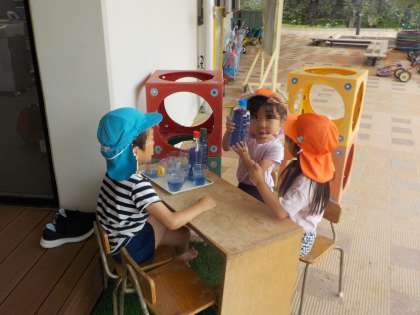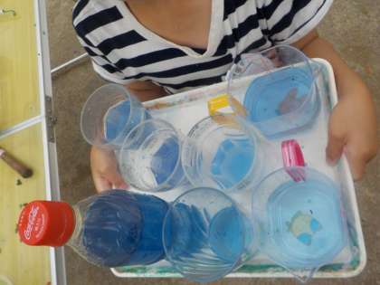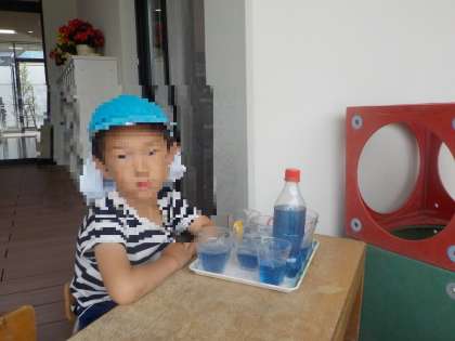 今は自分で色水をつくって、自分のつくった色水を来てくれた人に見てほしい!