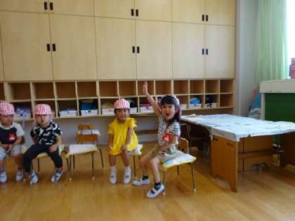 名前を呼ばれて「はぁい!」と返事しています。 とっても上手に返事していました。