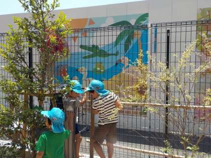 かわいいパーテーション 公開日 2023/06/16 更新日 2023/06/16 お知らせ 子どもたちの視線の先には・・・ 園の向こう側の工事現場と園の間のパーテーション。子どもたちが喜ぶように壁紙を貼ってくださっていました。 「うわあ!」「かわいい」「動物いっぱい」 「外に行って近くで見よう〜!」 戸外遊びの時に近くに見に行きました。 いいね(0)