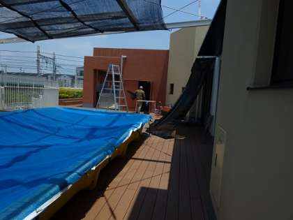 事業担当主事さんが着々と子どもたちのために、プールの準備をしてくれています。