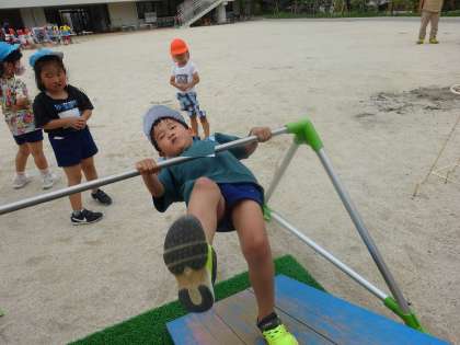 チャレンジ(年長そらぐみ つき組) 公開日 2023/06/21 更新日 2023/06/21 お知らせ 年長児は引き続きてつぼう、一本げた、一輪車などさまざまなことにチャレンジしています。 すぐにできるようになるものばかりではありません。 ときには「もう、やめる」 とくじけそうになることもあります。 その思いに担任の先生はよりそいながら、ちょっとずつ励まします。 “あと少しがんばってみよう” と子ども自身が思えるように。 さかあがりも何度もチャレンジしていました。 いいね(0)