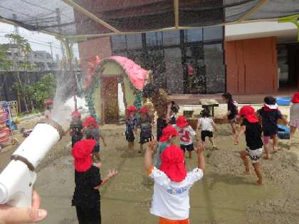 今日は暑かったので、昼から泥んこ遊びを楽しみました。