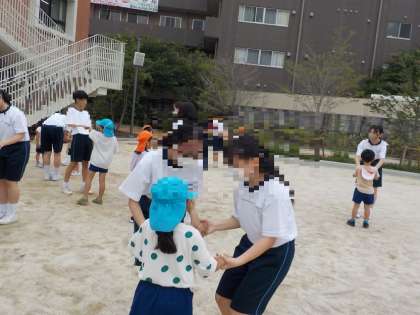 園児がどうしたら楽しめるかな、と考えながら優しく関わってくれており、子どもたちはとても嬉しそうでした。