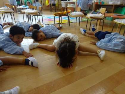 ぷしゅー 公開日 2023/06/26 更新日 2023/06/26 お知らせ 大好きな「だるまさんが」の絵本を読んでまねっこ遊びをしました。 “ぷしゅー”のとき、こどもたちがそれぞれの“ぷしゅー”を表現しようとする姿がかわいかったです。 いいね(0)