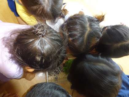 大きく、強そうなハサミを見て「かっこい!」「触ってみたい」と興味津々に見ていました。
