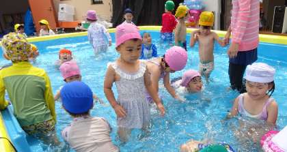今日は浮き輪やピート板、お宝さがしなどプールで好きな遊びを楽しみました!