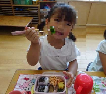 親子苗植えで育てていた野菜をお弁当に入れて、おいしそうに食べていました!