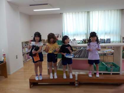 絵本の部屋で楽器遊びをしていた子どもたちが、「チケットどうぞ」「見に来てね」と、演奏会に誘ってくれました。