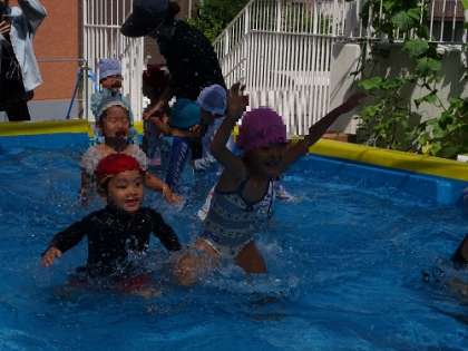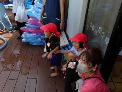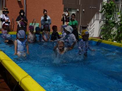 今日は、3歳児と5歳児(そら組)のプール参観でした。