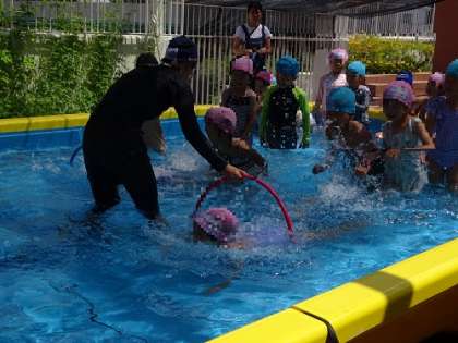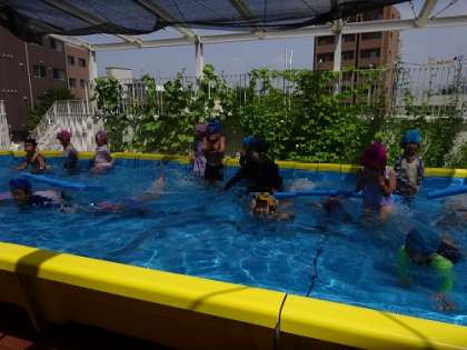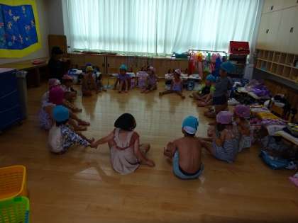 プール遊びの前に何をしたいか、何をして遊びたいか相談していました。