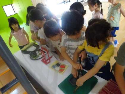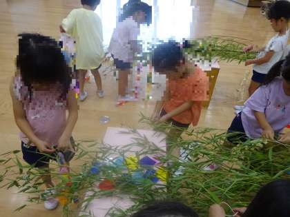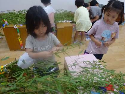 また、玄関に飾っている夏野菜や筆などのお供えを見て明日の七夕を楽しみにしていました。
