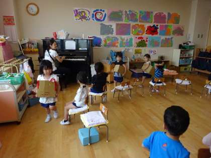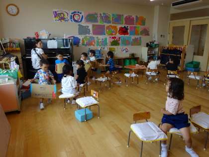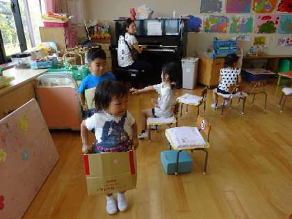 電車ごっこ(3歳児) 公開日 2023/07/11 更新日 2023/07/11 お知らせ 園庭で遊んでいると電車が間近に通るので、子どもたちは電車が大好きです。 段ボールを置いておくと、その中に入って電車ごっこが始まりました。 最近は朝来ると、交代で電車ごっこをして遊ぶ姿がたくさん見られます。 今日は、みんなで円になって、ピアノの音に合わせて電車ごっこを楽しみました。 「お友だち駅」に停まると交代です。 「次は○○ちゃんに交代ね」「私も早く乗りたいな」と楽しそうでした。 いいね(0)