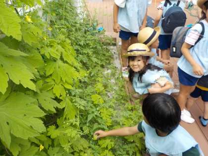 生き物との出会い・野菜の生長(5歳児) 公開日 2023/07/12 更新日 2023/07/12 お知らせ 写真1枚目・2枚目 生き物の親しめるような環境を整えています。命の大切さに気付いてほしいため、お家づくりやえさやりは子どもができるようにしています。 写真3枚目 苗植えをしたきゅうりがどんどん育ってきています。すぐにはできないため、持ち帰る順番も自分たちで相談しています。 いいね(0)