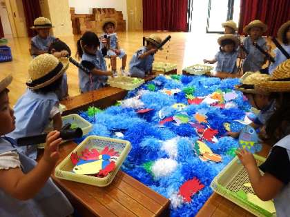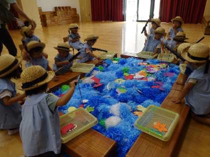 夏まつりをお休みしていた子どもたちのために、魚つりの遊び場を委員さんが残しておいてくれていました。