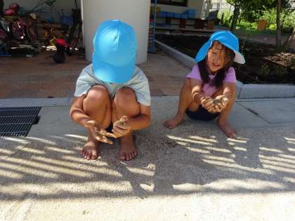 預かり事業 公開日 2023/08/02 更新日 2023/08/02 お知らせ 今日はどろ団子づくりをしていました。 ちょうど日陰で風通りもよくじっくり作っていました。 そのあとはせみ探し。 今日も捕まえることができました。 いいね(0)