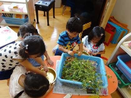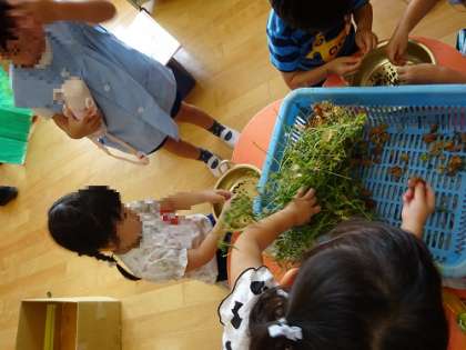 タネを取りながら、いろいろな発見を言葉に出して楽しんでいました。