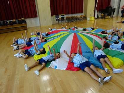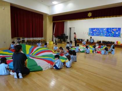 曲に合わせてバルーン遊びをしています。