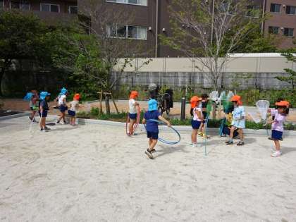 登園してきてすぐに活動し始めます。自分の持ち物の始末をあっという間に終えて、すぐに園庭に出て遊んでいます。