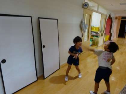 手裏剣を作っていた子どもたちは、さっそく襖に手裏剣を投げていました!