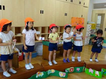 5歳児はリクエストに応じて歌を歌ったり、楽器を演奏したり…。