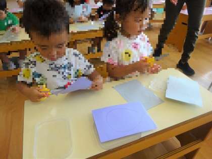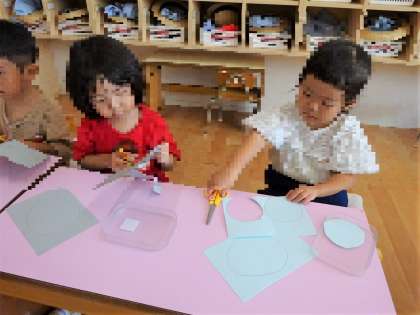 いろいろな製作(3歳児) 公開日 2023/09/07 更新日 2023/09/07 お知らせ 『ねずみの電車』が大好きな子どもたち。 遊びに必要なものも、自分たちでつくります。 ねずみの顔や、耳など、身につけるものを自分たちでつくることで、 よりイメージや興味が広がります。 「これは私の!」と、自分でつくったものを嬉しそうにいろんな先生に見せていました。 ハサミも回数を重ねるごとに持ち方が上手になってきました。 いいね(0)