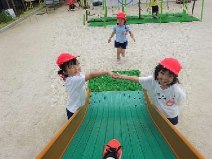 ねずみになって遊んだよ 公開日 2023/09/07 更新日 2023/09/07 お知らせ 好きな遊びの時間には、ねずみの耳やしっぽをつけてなりきって遊んでいます。 異年齢交流もたくさんしています。 戸外では、ごちそうづくりや玉入れをして遊んだり、 すべり台にお友達と一緒に手をつないで踏切をつくったりして楽しんでいました。 いいね(0)