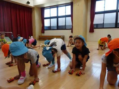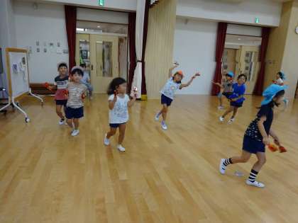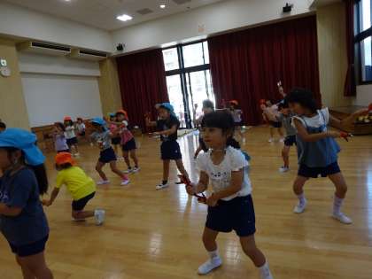 鳴子の踊り(5歳児) 公開日 2023/09/15 更新日 2023/09/15 お知らせ 張り切って「ソイヤ!」と掛け声をかけ合いながら遊んでいます。 地域のお祭りで鳴子を見た子もおり、「見たことある」「やりたい!」と意欲をもち、自分たちで振りを考えました。 昨年度の5歳児が運動会でしていたソーラン節の動きや、高知のよさこいの動画も見て、イメージを膨らませて考えました。 いいね(0)