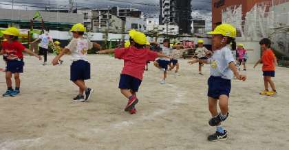 子どもたちと一緒にいろいろな忍法を考えて、体を動かして遊んでいます。今日は、「忍法!一本足の術」に挑戦。ゆらゆらしないように頑張る姿がとてもかっこいいです!