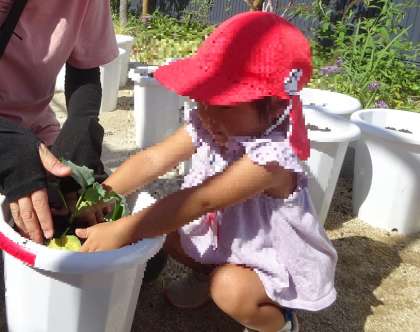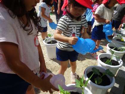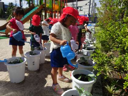 そうして、自分で植えた苗が、水をあげるごとに大きくなっていくと、愛着も湧いてくると思います。生長を楽しみにしながら、毎日お世話を楽しみ、食育につなげていきたいと思います。