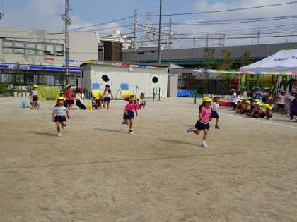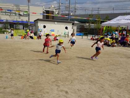 さすが4歳児は、走るスピードの速く、体の使い方が3歳児とは違います。